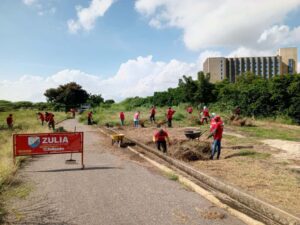De igual manera, las cuadrillas de brigadistas se mantienen activos en el mantenimiento y cuidado de emblemáticos lugares de encuentro social y cultural de la capital zuliana, en la Vereda del Lago 2 continúan las jornadas para optimizar este espacio recreativo, asegurando que se mantenga como un pulmón vegetal.