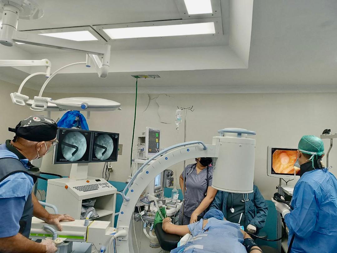 Este miércoles, 19 de febrero -luego de 10 años sin practicarse- fue realizada con éxito la primera Colangiopancreatografía Retrógrada Endoscópica (CPRE) con el equipo de «Arco en C» del Servicio de Radiología, siendo dirigido este procedimiento por el doctor Edgardo Mengual, gastroenterólogo y hepatólogo del @sahumve, bajo la dirección general de la doctora Oneida Osorio Muñoz.