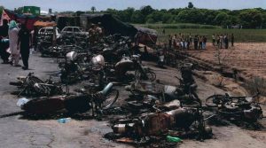 Kumar Tsukwam, comandante del sector FRSC para el estado de Níger, dijo que la mayoría de las víctimas eran residentes locales empobrecidos que se apresuraron a recoger la gasolina derramada después de que el camión volcara.