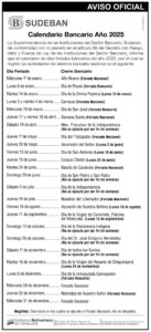 Sector bancario no prestará servicio los días 24 y 25 de diciembre. La Superintendencia de las Instituciones del Sector Bancario (Sudeban) informó que los días martes 24 y miércoles 25 de diciembre de 2025 el sector bancario no prestará servicio en todo el país, con motivo del Feriado Nacional y la Natividad de Nuestro Señor.